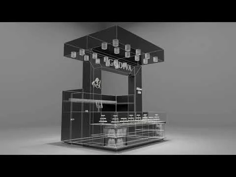 This concept was created for a Godiva kiosk that would be located in a large shopping center setting. The company is known for their superior chocolates, as well as the equally plush packaging it goes inside. I used this as the foundation for my structure and materials to produce an elegant design, cohesive with presence of their larger retail environments.
